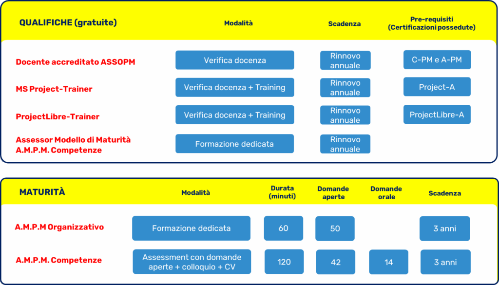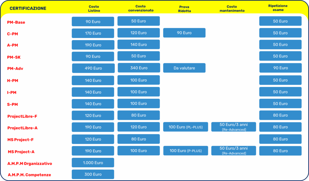 ASSOPM rilascia certificazioni relativi alle conoscenze disciplinari ed alla conoscenza sui principali software di Project Management.